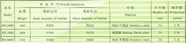 渦輪排氣抽風(fēng)機(jī)技術(shù)參數(shù)