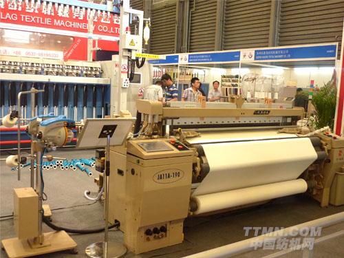 展示的兩臺(tái)噴氣織機(jī),突出展示了天一紅旗紡機(jī)公司噴氣織機(jī)產(chǎn)品先進(jìn)的設(shè)計(jì)、精良的制造和出眾的使用性能??赐庥^,外觀穩(wěn)重大方,運(yùn)轉(zhuǎn)速度高,運(yùn)轉(zhuǎn)平穩(wěn),振動(dòng)小,噪音低,宛如英俊硬朗的青年,既英俊又能干。選色最高可達(dá)8種緯紗,入緯率最高可達(dá)2200米/分鐘,廣泛適應(yīng)棉、毛、絲、麻、化纖、玻纖等各個(gè)紡織行業(yè),織造品種廣,適應(yīng)各種織物組織,特殊的光邊織造、分幅織造、上下雙層織物等也同樣能夠?qū)崿F(xiàn),此時(shí)又宛如一個(gè)心靈手巧的姑娘,能干而不嬌作。同時(shí)電子剪刀、自動(dòng)潤(rùn)滑,更加智能化人性化的電控操作界面,讓使用更方便直觀,省力省心。