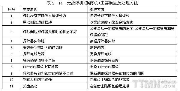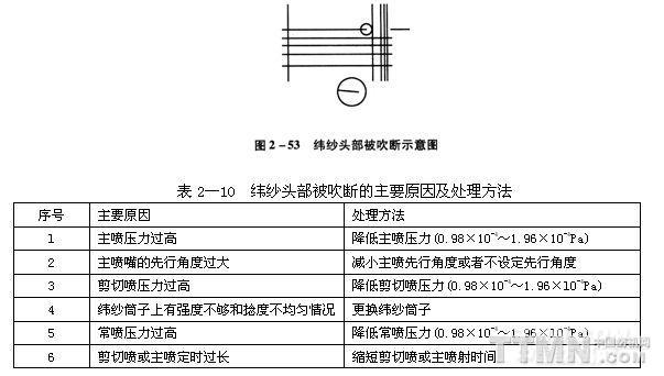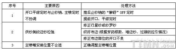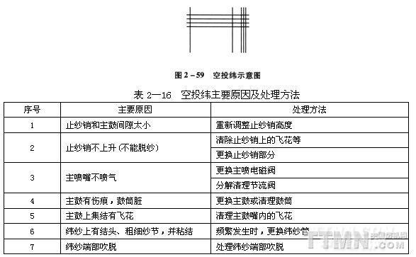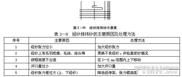 表2—7  織紗側(cè)邊經(jīng)紗掛緯紗主要原因及處理方法