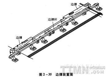 (1)邊撐的作用(圖2—35):把織物橫向張緊,防止織出的布寬度方向收縮,確保穩(wěn)定的織口,以滿足織造工藝和保證布面質(zhì)量。