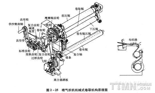 卷取機構的作用是根據(jù)織物對緯密的要求,將已經(jīng)織好的織物及時定量地引離織口,卷到卷取輥上,使織口位置不會因引入的新緯紗而變化,從而保證織造生產(chǎn)能夠連續(xù)進行。