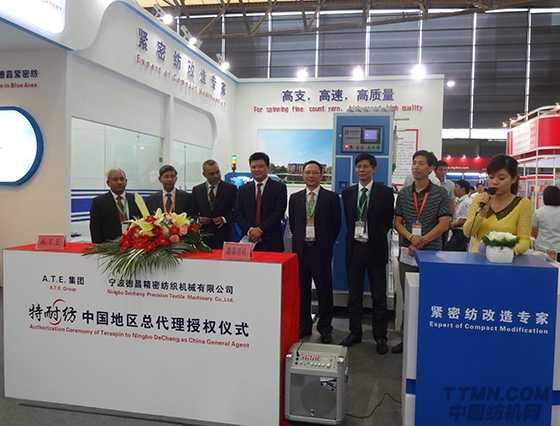 2014年6月16日下午兩點(diǎn),借著2014中國(guó)國(guó)際紡織機(jī)械展覽會(huì)暨ITMA亞洲展覽會(huì)的東風(fēng),寧波德昌精密紡織機(jī)械有限公司與印度ATE集團(tuán)強(qiáng)強(qiáng)聯(lián)姻,ATE正式授權(quán)德昌紡機(jī)為特耐紡中國(guó)地區(qū)總代理,并在展會(huì)現(xiàn)場(chǎng)德昌紡機(jī)的展臺(tái)W2H05舉行了授權(quán)儀式。