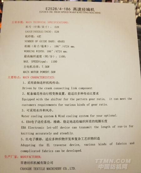 此次展會,常德紡織機械有限公司展出了E2528/4-186高速經(jīng)編機等產(chǎn)品。