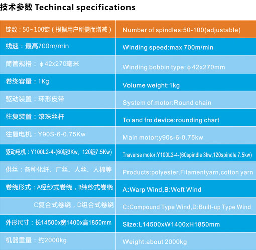 本機采用國外各種絡絲機之優(yōu)點,結合國內使用實際情況進行設計,該機外型美觀,結構合理,性能穩(wěn)定、電腦控制,變頻調速,操作方便,卷裝容量大,關鍵部件采用國外名優(yōu)產(chǎn)品,適應配套各種型號的倍捻機(包括進口倍捻機)所需的退介筒子。
