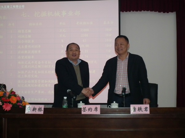 根據(jù)2011年公司整體目標(biāo),公司總部對各分子公司、事業(yè)部下達(dá)了今年的經(jīng)營任務(wù)。邵陽紡機、衡陽紡機、無錫飛達(dá)紡機、新魯包裝印刷、新瑞基礎(chǔ)、樁工機械事業(yè)部、挖掘機械事業(yè)部、包裝機械事業(yè)部、包裝印刷事業(yè)部、農(nóng)業(yè)機械事業(yè)部、結(jié)構(gòu)件事業(yè)部、液壓件事業(yè)部共5個子公司和7個事業(yè)部負(fù)責(zé)人分別與李新橋總經(jīng)理簽訂了2011年度經(jīng)營目標(biāo)責(zé)任狀。在新的起點、新的規(guī)劃下,2011年的經(jīng)營目標(biāo)要求各分子公司及事業(yè)部要實現(xiàn)新的跨越,所有分子公司及事業(yè)部的經(jīng)營指標(biāo)均有不同程度的提升。大會上,各位負(fù)責(zé)人激情昂揚,信心百倍,紛紛發(fā)言勇表決心,一致表示將全力以赴完成甚至超額完成任務(wù),力爭在恒天九五重工有限公司的全新平臺上,大展身手。