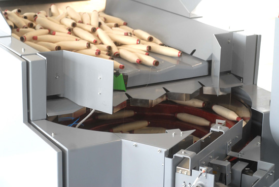 管紗由翻斗按需供給,完全取代了人工單個單錠供紗,整個過程實現(xiàn)自動化、連續(xù)化生產(chǎn),提高了勞動生產(chǎn)率,同普通紗庫形式的自動絡(luò)筒機相比,可減少70%用工。此外,管紗輸送增強了多通道邏輯判斷,使得管紗處理對滿管、空管、生頭、再生頭拔管等動作時,互不干擾,做到有序運行