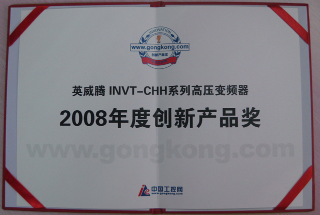 英威騰INVT-CHH系列高壓變頻器喜獲“2008年中國(guó)工控網(wǎng)年度評(píng)選”創(chuàng)新產(chǎn)品獎(jiǎng)
