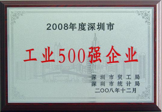 2008年12月,深圳市貿(mào)易工業(yè)局、深圳市統(tǒng)計局聯(lián)合發(fā)布深圳市2008年度進(jìn)入優(yōu)強工業(yè)企業(yè)庫500家企業(yè)名單,我司以綜合排名第359位列其中,入選“2008年度深圳市工業(yè)500強企業(yè)”。
