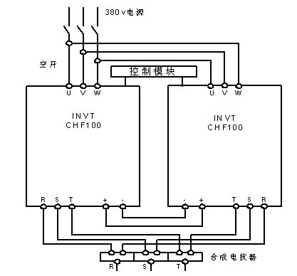 通過共用控制模塊與輸出合成電抗器,保證兩臺變頻器輸出功率平衡。