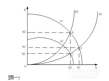 風機在管路特性曲線R1工作時,工況點為A,其流量壓力分別為Q1、H1,此時風機所需的功率正比于H1與Q1的乘積,即正比于AH1OQ1的面積。由于工藝要求需減小風量到Q2,實際上通過增加管網(wǎng)管阻,使風機的工作點移到R2上的B點,風壓增大到H2,這時風機所需的功率正比H2Q2的面積,即正比于BH2OQ2的面積。顯然風機所需的功率增大了。這種調節(jié)方式控制雖然簡單、但功率消耗大,不利于節(jié)能,是以高運行成本換取簡單控制方式。