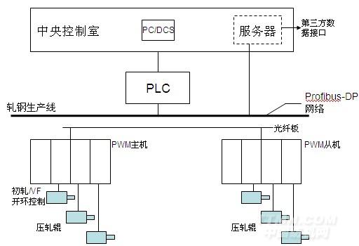 國內(nèi)某鋼廠集采選礦、鋼鐵冶煉、鋼材軋制為一體,其中軋鋼生產(chǎn)線集成了當(dāng)今世界先進(jìn)的生產(chǎn)工藝和技術(shù),采用了先進(jìn)的生產(chǎn)管理手段,其工藝裝備和產(chǎn)品檔次均達(dá)到國際一流水平。隨著計(jì)算機(jī)信息技術(shù)的快速發(fā)展,生產(chǎn)過程對(duì)生產(chǎn)效率和生產(chǎn)工藝的要求進(jìn)一步提高,此鋼廠進(jìn)一步加大技術(shù)改造力度,其扁鋼軋線項(xiàng)目使用英威騰IPE200系列四象限矢量變頻器和S7-300組成整流回饋多傳動(dòng)控制系統(tǒng),在系統(tǒng)設(shè)計(jì)可靠性和工藝要求上達(dá)到國內(nèi)先進(jìn)水平。本文將對(duì)其進(jìn)行簡單介紹,對(duì)英威騰IPE200整流回饋多傳動(dòng)系統(tǒng)著重說明。