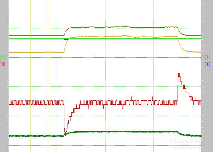 圖表說明:紅色---速度跌落 棕色---轉(zhuǎn)矩電流