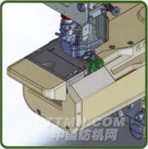 用于車縫男士三角褲腰部的寬幅松緊帶創(chuàng)新的機座形狀,對于三角褲的腿口不會勾卡而能順利的車縫。前后拖輪都配裝在機頭,所以組裝機器也簡便。