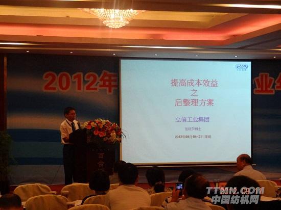 由中國棉紡織行業(yè)協(xié)會(huì)主辦、色織布專業(yè)委員會(huì)承辦的"2012年全國色織布行業(yè)年會(huì)"于9月10-12日在深圳布吉百合酒店召開。年會(huì)共迎來自全國各地一百多位與會(huì)者參加,共同商討以"提升自動(dòng)化,促清潔生產(chǎn)"為主題,如何有效降低行業(yè)污染、提升行業(yè)清潔生產(chǎn)能力、色織用紗質(zhì)量控制、色織行業(yè)自動(dòng)化裝備及工藝提升措施等內(nèi)容。