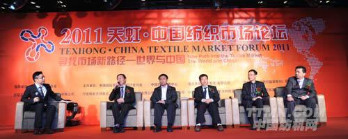 10月19日,由中國(guó)紡織工業(yè)協(xié)會(huì)指導(dǎo),中國(guó)國(guó)際貿(mào)促會(huì)紡織行業(yè)分會(huì)、中國(guó)紡織信息中心、法蘭克福展覽(香港)有限公司聯(lián)合主辦的“天虹?2011中國(guó)紡織市場(chǎng)論壇”在滬舉行。