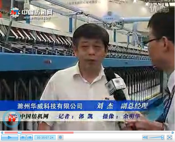 在2010年中國國際紡織機(jī)械展覽會暨ITMA亞洲展覽會現(xiàn)場,滁州華威科技有限公司副總經(jīng)理劉杰先生接受了記者的采訪,并向記者展示了公司亮相展會的兩款主力機(jī)型:粗紗機(jī)、變條機(jī)系列。