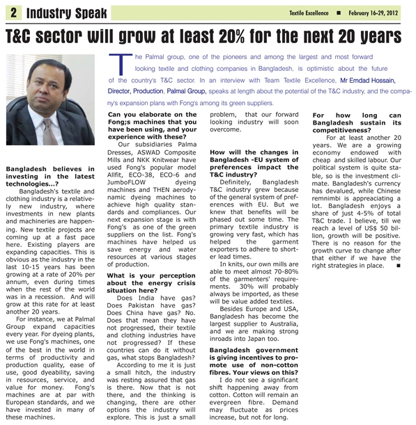 立信染整機(jī)械有限公司于2012年2月9-12日參加了在孟加拉國舉行的DTG 2012,展示最新的高溫染色機(jī)JUMBOTEC3-2T。以下是有關(guān)是次活動(dòng)的文章: