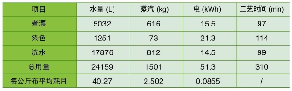4.5 全程耗能耗時與傳統(tǒng)工藝比較(棉針織織物)