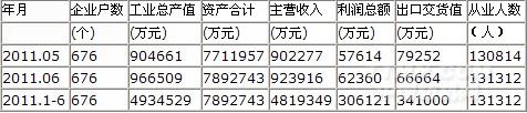 據(jù)國家統(tǒng)計局公布的數(shù)據(jù),2011年1-6月份我國規(guī)模以上紡織機(jī)械行業(yè)企業(yè)數(shù)量為676家,該行業(yè)實現(xiàn)工業(yè)總產(chǎn)值493.45億元,同比增加31.32%;資產(chǎn)合計789.27億元,同比增加27.84%;實現(xiàn)主營收入481.93億元,同比增加30.77%;完成利潤總額30.61億元,比上年同期增加7.91億元,同比增加34.82%;完成出口交貨值34.10億元,同比增加23.86%;行業(yè)整體從業(yè)人數(shù)13.13萬人,同比增加8.01%。由此可見,紡織機(jī)械行業(yè)總量增長勢頭良好,并為我國經(jīng)濟(jì)、財政、出口和就業(yè)作出了重大的貢獻(xiàn)。