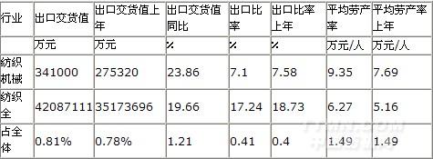 從行業(yè)產(chǎn)品出口交貨值和勞動生產(chǎn)率水平看,2011年1-6月份紡織機(jī)械行業(yè)產(chǎn)品出口交貨值為34.10億元,占紡織全行業(yè)的0.81%;出口交貨值比上年同期增加23.86%;該行業(yè)產(chǎn)品出口比率(出口交貨值/工業(yè)銷售產(chǎn)值)為7.10%,而上年同期為7.58%,表明該行業(yè)產(chǎn)品出口狀況較好;從勞動生產(chǎn)率的水平看,2011年1-6月份紡織機(jī)械行業(yè)平均勞產(chǎn)率(工業(yè)增加值/從業(yè)人數(shù))為9.35萬元/人,而上年同期為7.69萬元/人,表明該行業(yè)勞動生產(chǎn)率的實際水平較為理想。