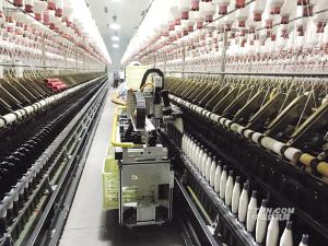 松寶S9型智能落紗機(jī)在武漢江南實(shí)業(yè)集團(tuán)使用現(xiàn)場(chǎng)。