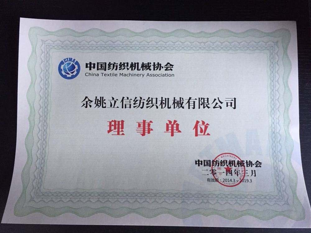 余姚立信紡織機械有限公司 任 中國紡織機械協(xié)會 理事單位 (2010.3-2019.3)
