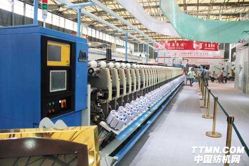 次東飛馬佐里紡機(jī)有限公司有三臺展機(jī)參展,其中DTMl49—1200緊密紡長車型高速集體落紗細(xì)紗機(jī)和DTMl29—612賽絡(luò)緊密紡短車型高速集體落紗細(xì)紗機(jī),現(xiàn)場演示的品種為TC65/35緊密紡50支,最高工藝紡紗錠速為25000轉(zhuǎn)/分,平均紡紗工藝錠速為23216轉(zhuǎn)/分。這次參展的新型紡機(jī)是在全面優(yōu)化機(jī)械結(jié)構(gòu)設(shè)計的基礎(chǔ)上,結(jié)合了應(yīng)用模塊化、設(shè)計系統(tǒng)化、控制智能化等最新研發(fā)成果,采用公司自主研發(fā)創(chuàng)新的東飛牽伸系統(tǒng),幫助用戶成功實現(xiàn)了紡紗效益最大化的夢想,迎合了紡織行業(yè)轉(zhuǎn)型升級的渴求,順應(yīng)了節(jié)能、省工、高效的發(fā)展方向,并解決了紡織企業(yè)提高生產(chǎn)率、提升產(chǎn)品品質(zhì)、細(xì)紗工序減員的關(guān)鍵癥結(jié)。