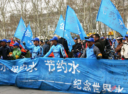 恒天重工邯鄲紡機(jī)驢友隊騎行宣傳節(jié)水周