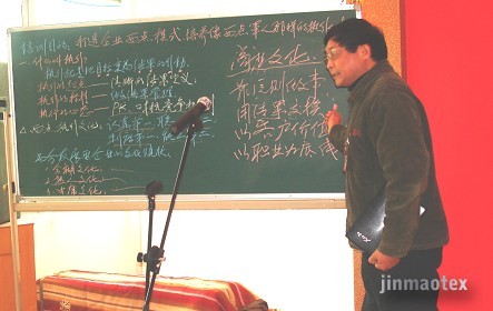 公司在目前經(jīng)濟危機向?qū)嶓w經(jīng)濟蔓延,形勢更加嚴峻的情況下,一方面調(diào)整經(jīng)營策略,另一方面練好內(nèi)功,增強實力。利用企業(yè)壓縮生產(chǎn)經(jīng)營規(guī)模,調(diào)整優(yōu)化產(chǎn)品結(jié)構(gòu),進一步加強技術(shù)創(chuàng)新和產(chǎn)品研發(fā)的間隙,抓緊培訓(xùn)企業(yè)員工,增強員工隊伍的素質(zhì),為下一個紡織發(fā)展振興周期的到來準備好條件。(撰稿:許盛榮) 圖1:公司董事長楊崇明在為企業(yè)中層管理干部以上的員工授課。 課程涉及如何提高執(zhí)行力等內(nèi)容。