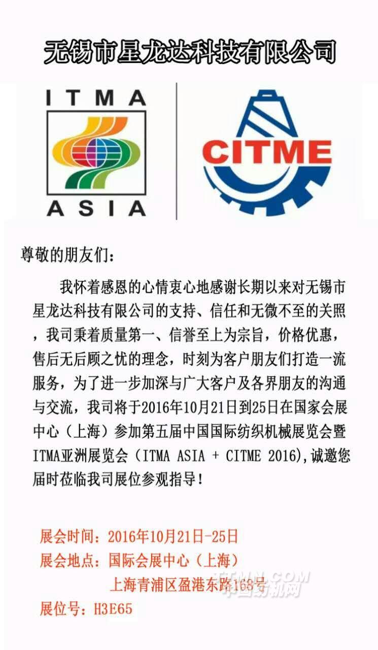 無錫星龍達(dá)參加2016年10月份上海ITMA紡機(jī)展