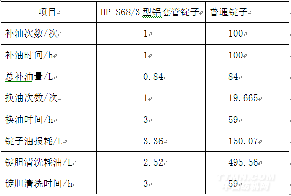 表1 HP-S68/3型鋁套管錠子與普通錠子油耗對(duì)比