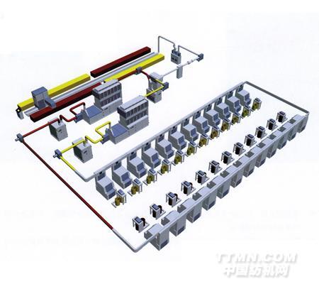 該機器配置的PLC智能系統(tǒng)一機兩線設備流程中的CPC預開棉機,可根據原棉的含雜質不同,設置兩組除雜工藝,與搖板閥同步變化,除雜效率更高,纖維損傷最小。一機兩線清花的兩條喂棉管道尾端可以閉環(huán)連接,(配16臺梳棉機以下)并加裝若干各插板閥,即可滿足兩條清花線不同產量的供應關系。