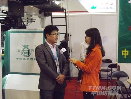 (圖為常州市武進(jìn)五洋紡織機(jī)械的王經(jīng)理在接受中國(guó)紡機(jī)網(wǎng)記者采訪  中國(guó)紡機(jī)網(wǎng) TTMN攝)