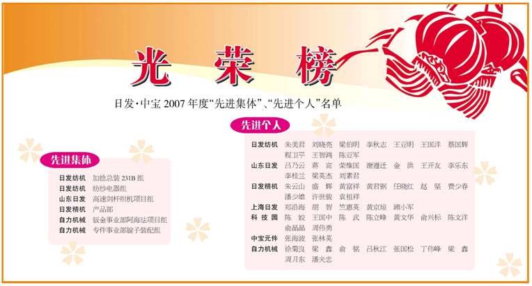 光榮榜——日發(fā)中寶2007年度“先進集體”、“先進個人”名單