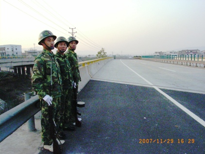 12月29日新昌城關(guān)鎮(zhèn)某國道線全線封鎖,全副武裝的民兵在道口、橋梁、隧道等重要部位有序部署,呈黑油亮的槍械在微風(fēng)中林立,民兵應(yīng)急分隊的旗幟隨風(fēng)飄揚(yáng),不時引來路人駐足觀望。道口指揮標(biāo)識旗伺機(jī)而動,道路車輛、行人令行禁止,有序通行;不一時便有車載警報聲響起,開導(dǎo)車及隨行車隊循聲徐徐而至,呼嘯南去。 這緊張的場景,莊嚴(yán)的神色,無不給人以逼真的感覺;但事后的點評卻告訴我們這只是一次戰(zhàn)前保障的真槍實彈的演習(xí),只是紹興軍分區(qū)首長對我縣地面交通保障分隊的一次檢驗和考核。雖然說這只是演習(xí),卻有針對性地指出了當(dāng)前對臺軍事斗爭的嚴(yán)峻性,明確了企業(yè)民兵戰(zhàn)時所擔(dān)負(fù)的任務(wù);預(yù)示著國家寓兵于民、全民皆兵和應(yīng)急征集等軍事政策的重要意義。促使公司進(jìn)一步參與民兵事業(yè),并從實踐中理解“平時多流汗,戰(zhàn)時少流血”的警示;從演練中知悉企業(yè)民兵在未來局部戰(zhàn)爭中的作用;從演習(xí)中提高“居安思危、忘戰(zhàn)必危”的國防意識。 本次演習(xí)由縣武裝部統(tǒng)一組織,我中寶·日發(fā)集團(tuán)武裝部率10人參加了七星街道武裝部協(xié)調(diào)指揮的地面交通保障分隊,擔(dān)負(fù)和執(zhí)行交通管制、橋梁守護(hù)任務(wù),圓滿完成了份內(nèi)的作戰(zhàn)演習(xí)任務(wù),受到了縣部和軍分區(qū)領(lǐng)導(dǎo)的肯定。