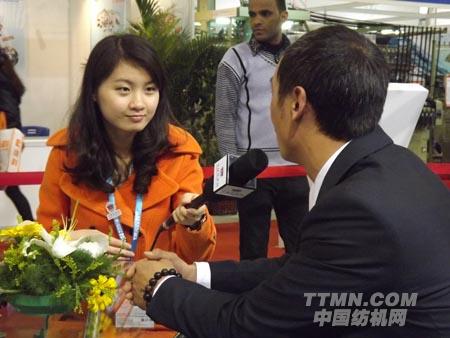 (圖為日發(fā)紡織機(jī)械的潘經(jīng)理在接受中國(guó)紡機(jī)網(wǎng)記者采訪  中國(guó)紡機(jī)網(wǎng) TTMN.COM攝)