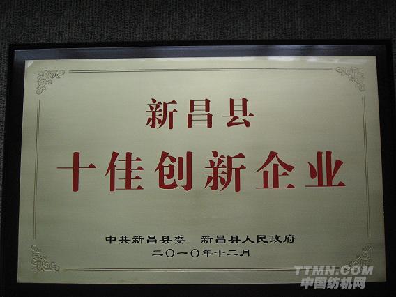日發(fā)紡機被命名為2010年度新昌縣“十佳創(chuàng)新企業(yè)”