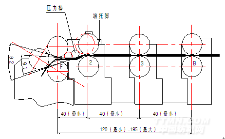 棉條包圍角調(diào)節(jié)幅度大,膠輥帶著壓力棒通過(guò)膠輥托架,相對(duì)于下羅拉垂直中心平面前后可移動(dòng)±4.5mm,壓力棒的棒條包圍角調(diào)節(jié)幅度(如上圖)由最小2.7°,到最大32°,這對(duì)于適應(yīng)不同原料與不同品種的紡制是有利的。由于壓力棒包圍角調(diào)節(jié)幅度大,使一羅拉不存在反包圍弧。很好的起到壓力棒附加摩擦力界的作用。