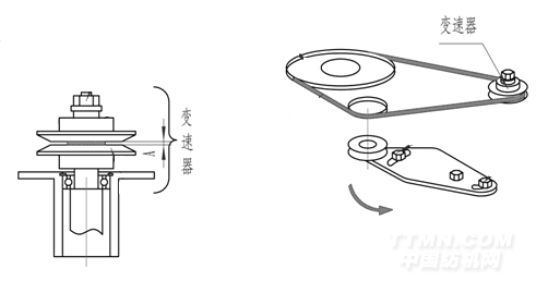 FA387型數(shù)字并條機(jī)調(diào)整圈條張力采用V型帶傳動(dòng),通過(guò)調(diào)節(jié)調(diào)整墊片中間距離改變主動(dòng)輪的直經(jīng),從而達(dá)到改變上圈條的轉(zhuǎn)數(shù),達(dá)到無(wú)級(jí)調(diào)節(jié)張力的目的。變換輪減少許多,同時(shí)更利于整機(jī)張力的調(diào)整。