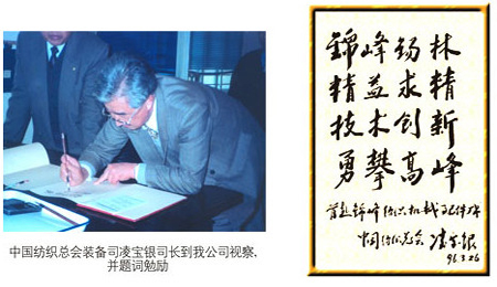 中國(guó)紡織總會(huì)裝備司凌寶銀司長(zhǎng)到我公司視察,并題詞勉勵(lì)。(圖文)