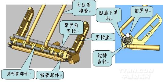 ① 異形管與小羅拉由兩端的異形管座分體式組裝,小羅拉處不易積花