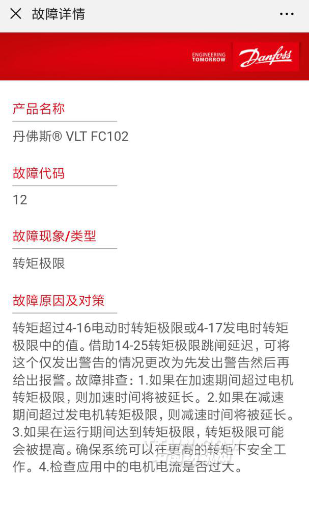 以上就是丹佛斯傳動全新的故障速查系統(tǒng),我們希望,通過最新版的故障速查系統(tǒng),能更好得與客戶拉近距離,為大家提供最有效、最優(yōu)質(zhì)的服務(wù)。
