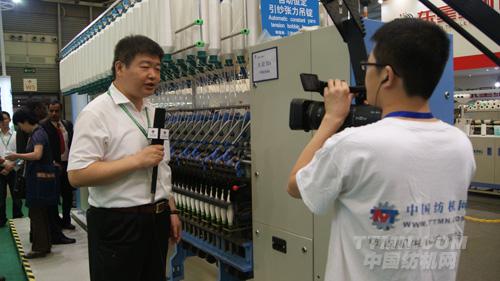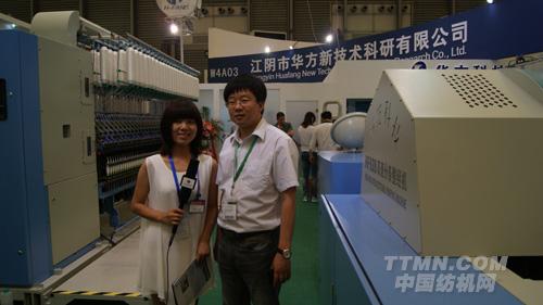 記者:我現(xiàn)在所在的展位是江陰市華方新技術科研有限公司的展位。華方科技專注于制造紡織機械的整經(jīng)機領域。他們最近研制的細紗機緊密紡改造裝置也獲得了一系列的成果。今天就有請到了華方科技的周總為我們介紹本次展會他們帶來的一些新的產(chǎn)品。周總您好!
