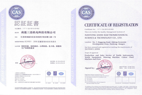 2011年3月3日,我公司經(jīng)過認(rèn)證公司的重新考核和復(fù)審,順利的獲得了ISO9001:2008質(zhì)量管理體系的認(rèn)證證書。