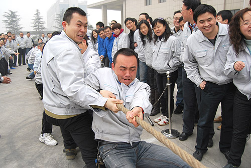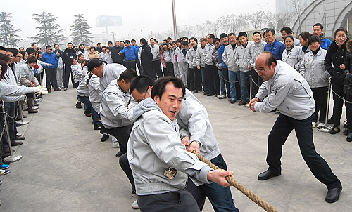 為慶祝農(nóng)歷壬辰年新春佳節(jié)的來(lái)臨,2012年1月18日下午,紡電公司在公司園區(qū)內(nèi)開(kāi)展了“賀新年迎春運(yùn)動(dòng)會(huì)”。紡電公司9個(gè)分會(huì)、14個(gè)部門(mén)的200多名員工參加了運(yùn)動(dòng)會(huì)。此次運(yùn)動(dòng)會(huì)設(shè)置了“拔河、集體木屐、跳繩、頂氣球”四個(gè)項(xiàng)目。各分會(huì)和各參賽單位都認(rèn)真對(duì)待,積極組織訓(xùn)練,各行政單位也給予全力支持。運(yùn)動(dòng)會(huì)本著“友誼第一、比賽第二”的原則,賽場(chǎng)上隊(duì)員全力以赴、斗志昂揚(yáng),比賽緊張激烈、精彩紛呈,展現(xiàn)了紡電員工的活力和激情。經(jīng)過(guò)激烈的角逐,紡研所分會(huì)獲得集體木屐、跳繩、頂氣球三項(xiàng)總分第一;質(zhì)管部分會(huì)和紡電制造部分會(huì)并列第二名。拔河比賽前兩名分別是:紡研所分會(huì)和紡電制造部分會(huì)。通過(guò)比賽,既增強(qiáng)了員工的體質(zhì)、愉悅了身心、鍛煉了意志,也促進(jìn)了員工間的了解與交流,增進(jìn)了友誼,比出了風(fēng)格,賽出了水平。