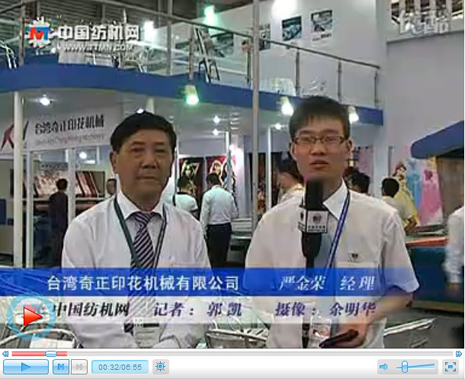 今年六月,2010年中國國際紡織機(jī)械展覽會(huì)暨亞洲展覽會(huì)于上海舉行。在展會(huì)現(xiàn)場,記者有幸采訪到臺(tái)灣奇正印花機(jī)械有限公司嚴(yán)金榮經(jīng)理。