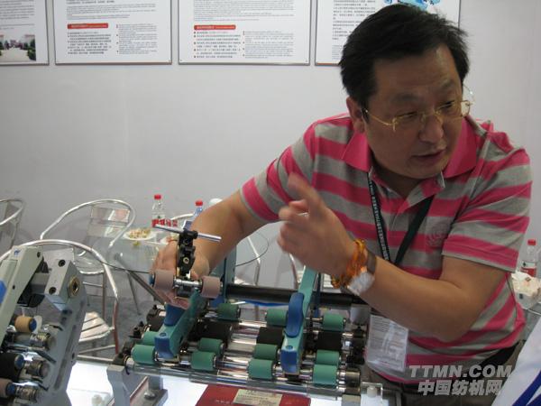 本屆紡機(jī)展,雙帆的展臺(tái)前吸引了大批客戶,據(jù)張家港雙帆紡織器械有限公司總經(jīng)理姜國(guó)海介紹,公司搖架的旺銷主要原因歸功為第三代YJQ-145VBIII系列氣動(dòng)加壓搖架在市場(chǎng)的廣泛使用。