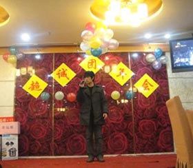 在這次團年會上,首先公司副總經(jīng)理兼銷售部總監(jiān)宋萍女士作了致詞,而且還作了上年的工作總結及11年的五項重點項目布署,讓大家勢氣大增,精神鼓舞,讓大家有了更好的規(guī)劃與奮斗目標。緊接著,公司董事長宋宗團先生上臺發(fā)表了精彩的祝酒詞。揭開了2011年團年晚會的精彩表演。