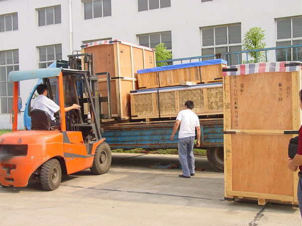 圖為9月上旬,天門紡織機械有限公司生產(chǎn)的一批棉紡并條機集裝上車,運往棉紡企業(yè)。