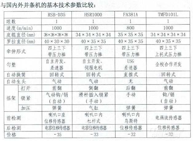 與國內(nèi)外并條機的基本技術(shù)參數(shù)比較: